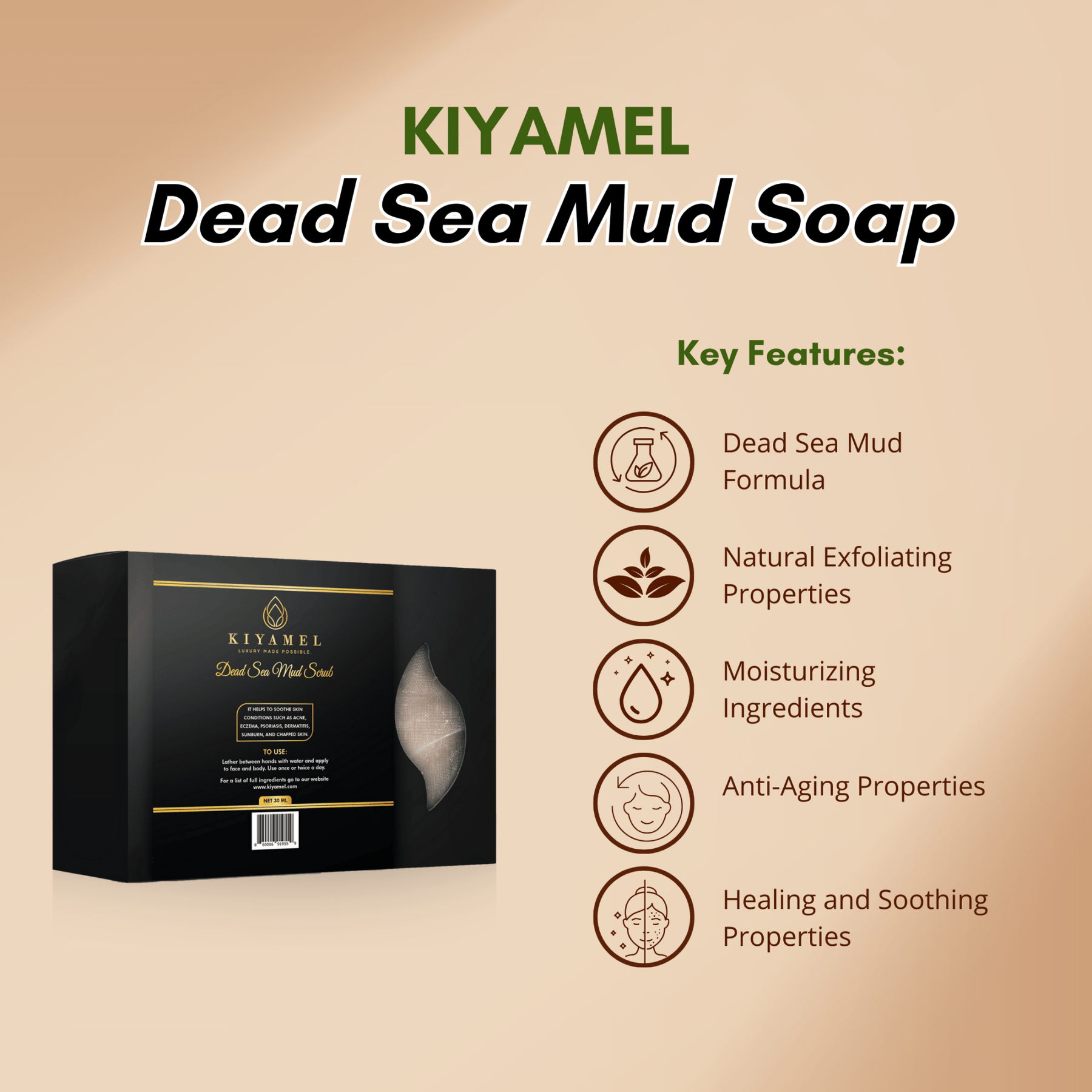Experience the rejuvenating power of Kiyamel Lux Dead Sea Mud Scrub Soap, designed to cleanse, hydrate, and soothe acne-prone, dry, and sensitive skin. Enriched with mineral-rich Dead Sea mud, this gentle exfoliating soap helps remove dead skin cells, calm irritation, and strengthen the skin barrier, leaving your complexion soft, smooth, and naturally radiant.